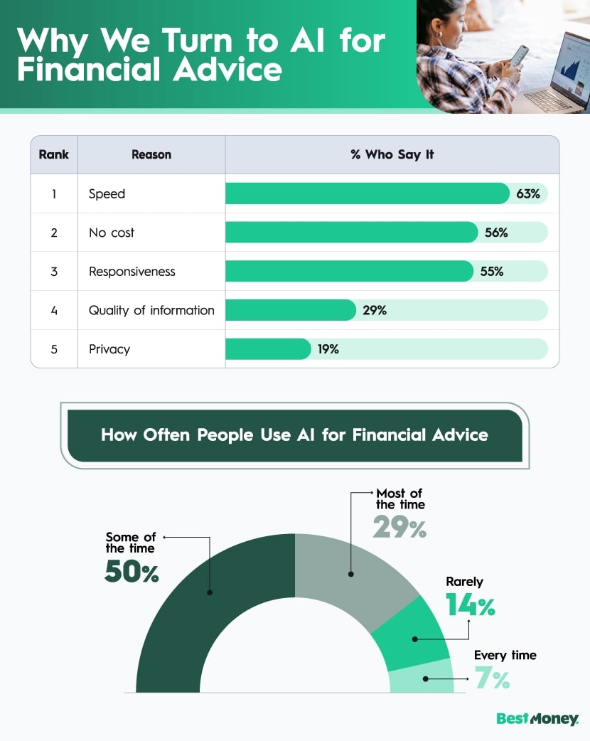- 58% of Americans have used AI to seek information or guidance on finances.