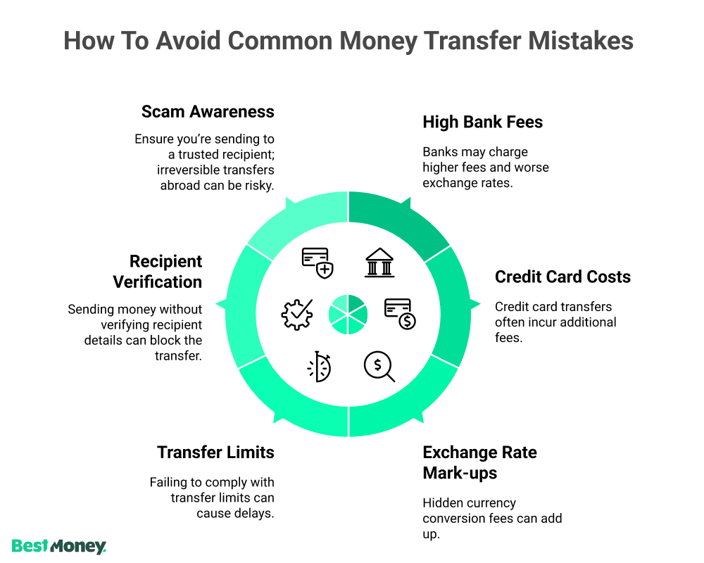 Traditional bank wires for overseas transfers have higher fees and worse exchange-rate mark-ups compared to specialist services.
