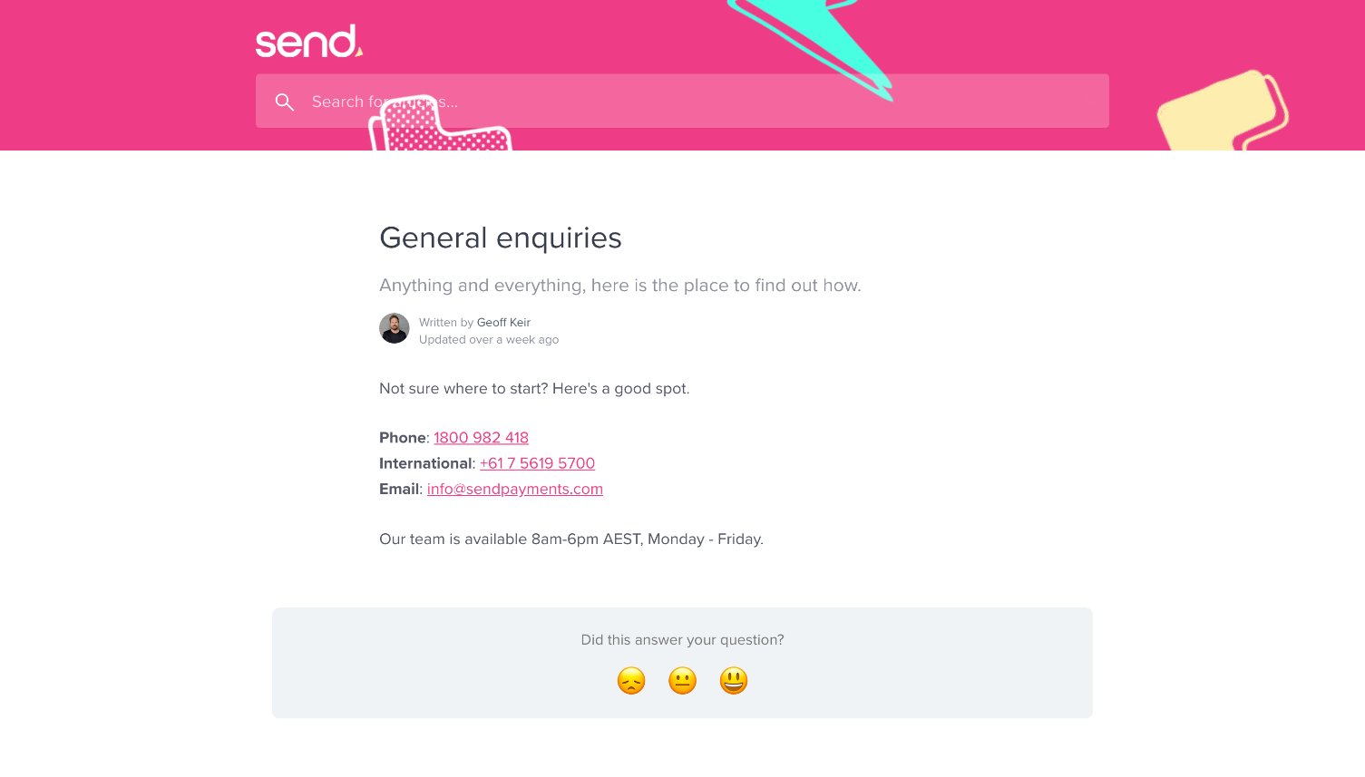 Holders of Send accounts have an assigned account manager who becomes their primary contact. Customers should first contact this person if any problems arise.